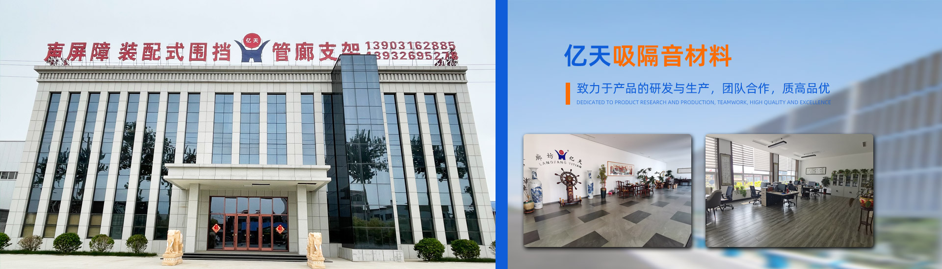 廊坊億天吸隔音材料有限公司于1997年建廠,公司位于河北省廊坊市文安縣興隆宮鎮(zhèn)朱河村工業(yè)區(qū),地處京、津、冀金三角地帶,注冊資金8005萬元。公司一直致力于環(huán)保產(chǎn)品的研發(fā)與生產(chǎn),主要涉足于公路鐵路噪聲處理、廠房鋼結(jié)構(gòu)、防塵抑塵治理、環(huán)境美化四大領(lǐng)域。主營產(chǎn)品有高速鐵路用···